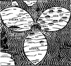 Иерусалим — центр мира. Карта 1585 г., на которой мир изображен в виде трилистника с Иерусалимом в центре.