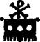 Лабарум(государственное знамя Рима, появившееся при Константине I), увенчанный монограммой Иисуса Христа. Изображение на монетах.