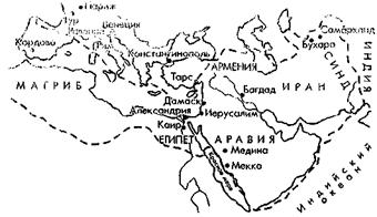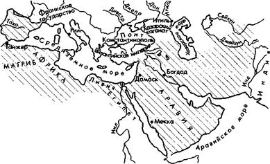Преемники Мухаммеда из рода Омейядов под знаменем ислама в результате завоевательных войн в VII—VIII вв. образовали единое государство — Халифат с обширным пространством от Пиренеев до Индии со столицей в Дамаске. Арабам удалось завоевать Ирак, Сирию, Палестину и Месопотамию, покорить всю Северную Африку, большую часть Пиренейского полуострова, установить свое господство в Иране и Афганистане, подчинить Закавказье. ВIX в. Халифат Аббасидов (столица Багдад) распадается на отдельные государства.