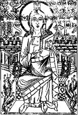Христос на троне Рисунок из Евангелия Карла Великого.