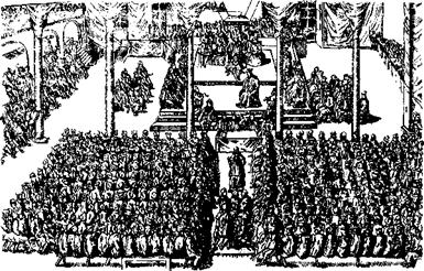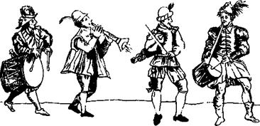 Музыканты. Участвующие в спектакле. Гравюра. 1588.