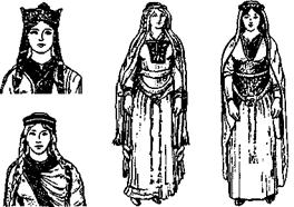Женские платья, накидки, украшения, прически. Середина XII в.