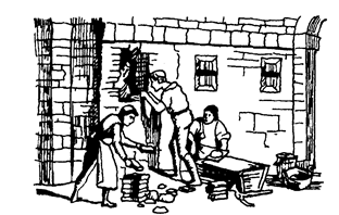Мастерская портного. Мастеровые у печи. Плавка руды.