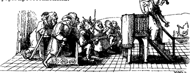 Ганс Гольбейн младший. Глупость, спускающаяся с кафедры. Серия рисунков «Похвала глупости».