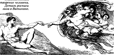 Микеланджело. Сотворение человека.Деталь росписи зала в Ватикане.