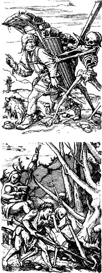 Ганс Гольбейн младший. Смерть и разносчик. Смерть и Адам. Из серии «Танец смерти»