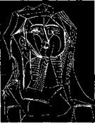 Пабло Пикассо. Голована черном фоне. Эстамп. 1953