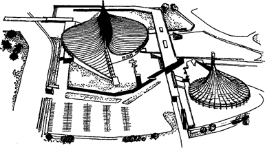 Олимпийский спортивный комплекс в Токио. Архитектор К. Танге. 1964.