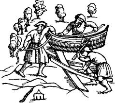 Строительство ладьи. X в. С древнерусской миниатюры.