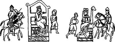 Переговоры киевского князя Святослава с византийским императором Цимисхием.Миниатюра из рукописи Иоанна Скилицы.