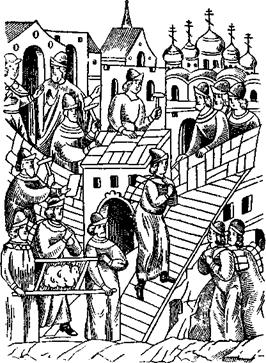 Закладка князем Дмитрием Ивановичем каменной Москвы. Миниатюра из летописи.