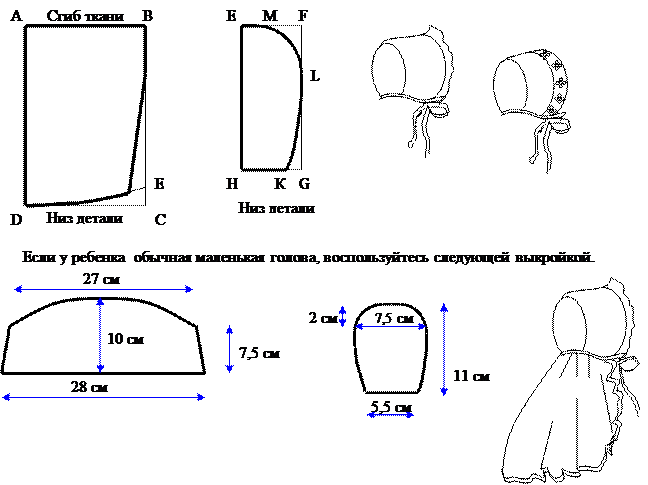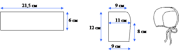 Для построения чертежа чепчика с донышком возьмем следующие размеры: