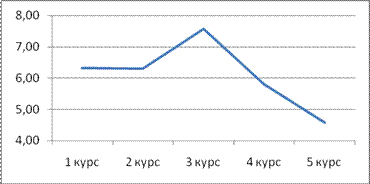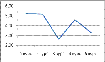 Наибольшая выраженность представлений на первом курсе, минимальная – на пятом курсе представлена на рисунке 2.2.7.