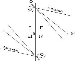 В соответствии с 2-мя направлениями вращения имеют место 2-семейства механических характеристик. Для положительного направления вращения одно семейство пересекается в точке w0, а для противоположного направления вращения – в точке -w0.Уравнение механической характеристики для об