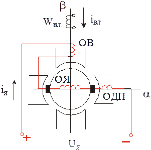 Индуктивность рассеяния якорной цепи LЯS ДНВ значительно меньше индуктивности LВ обмотки возбуждения, связанной с главным потоком двигателя, поэтому ею часто пренебрегают. Однако при этом нужно иметь в виду, что при LЯ=0 ток двигателя при изменении скачком приложенного напряжения тоже может измениться скачком.
