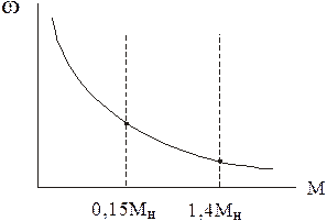 ; a1 – коэффициент пропорциональности, а Ф0 – поток остаточной индукции. Если подставить значения Ф в уравнение электромеханической характеристики, получим неявно выраженную гиперболу. При нагрузках когда IЯ>1,3IН, а М>1,4МН Ф остается практически постоянным и механическая характеристика двигателя приобретает линейный характер. Скорость двигателя уменьшается лишь за счет падения напряжения в якорной цепи.
