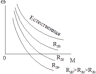 вверх по отношению к естественной. При увеличении сопротивления якорной цепи скорость двигателя уменьшается и характеристики смещаются вниз. Жесткость характеристик при этом уменьшается. Семейства механических характеристик, соответствующих различным напряжениям на зажимах двигателя и различным сопротивлениям якорной цепи изображены на рисунках. Из графиков видно, что скорость ДПВ при работе как на естественной, так и на искусственных характеристиках при увеличении нагрузки резко падает. Характеристики являются мягкими. Поэтому ДПВ непригодны для электроприводов, требующих постоянства скорости при меняющейся нагрузке.
