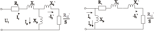 Этим уравнениям соответствует Т-образная схема замещения, известная из курса эл.машин и упрощенная Г-образная схема.