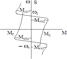- перегрузочная способность АД, можно, задаваясь различными значениями скольжение S, построить естественную механическую характеристику двигателя во всем возможном диапазоне изменения скольжения. На графике приведены естественные характеристики для прямого и обратного действия эл.магнитного момента.