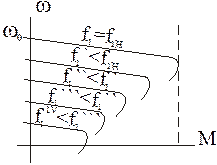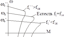 , механические характеристики будут выглядеть так, как изображено на рисунке. Видно, что при изменении напряжения только в функции частоты по закону