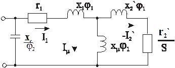 Для определения скорости ротора, при которой возникает самовозбуждение, воспользуемся упрощенной схемой замещения для начального момента времени после отключения статора от сети и подключения батареи конденсаторов.