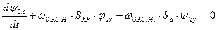 Однако, представляет интерес и анализ переходных процессов при мало меняющемся Ф и ограниченных пределах изменения скорости ωЭЛ, например, в случае изменения нагрузки скачком, или при периодически меняющейся нагрузке. Рассмотрим динамический режим работы двигателя после подключения к источнику напряжения, когда свободные составляющие, обусловленные переходным процессом включения, затухли. Предполагаем, что отклонения скорости от установившегося значения малы. Незначительны и изменения токов статора и ротора, следовательно, результирующий Ф остается практически постоянным. Потокосцепления Y1x и Y1y могут быть при этом приняты приближенно также постоянными.