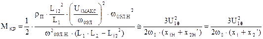 Это соотношение получено путем преобразования двухфазного напряжения U1макс к трехфазному U1ф и при учете того, что xµн»x1н; xµн»x`2н.