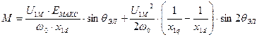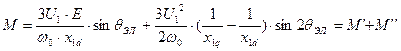 Заменив переменные двухфазной машины переменными трехфазной машины с помощью формул фазного преобразования и используя действующие значения ЭДС и напряжения, получим известное из курса эл.машин уравнение угловой характеристики СД.