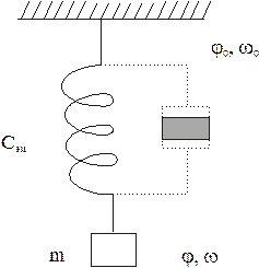 Здесь электромагнитная связь между полями статора и ротора СД заменена пружиной с жесткостью СЭМ, а приведенный I ротора и механизма представлен подвешенной на этой пружине массой «m». Очевидно, механический аналог СД представляет собой идеальное колебательное звено, в котором возникающие по тем или иным причинам колебания не затухают.