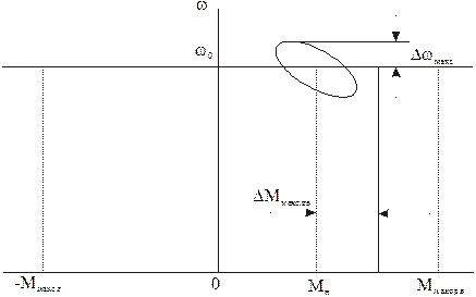 что при р=0 w=0 статическая механическая характеристика имеет вид прямой, параллельной оси моментов в пределах перегрузочной способности двигателя.В динамических режимах, как следует из уравнения момента, механическая характеристика не является абсолютно жесткой. В установившемся динамическом режиме вынужденных колебаний изменениям момента с амплитудой DМmax и соответствующим изменениям угла qэл соответствуют определенные амплитуды Dwmax колебаний скорости и динамическая характеристика имеет вид эллипса. Динамическая жесткость ее определяется соотношением: