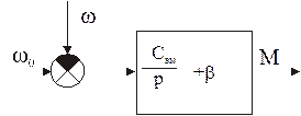 Это значит, что в окрестностях точки статистического равновесия асинхронный ЭМП представляется апериодическим звеном. Структурная схема асинхронного ЭМП (АД), линеаризованного в пределах рабочего участка статической механической характеристики выглядит так: