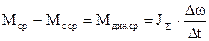 последовательно приращениями скорости Dw1, Dw2 и т.д. находят среднее значение Мдин.ср. для каждого участка. Иначе говоря, кривая динамического момента (она здесь неизображена) делится на ряд участков, на каждом из которых Мдин. считается постоянным и равным среднему значению.