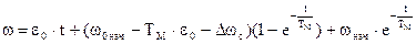 По достижении моментом двигателя значения, равного Мс, двигатель приходит во вращение и начинается второй этап (II), который закончится, когда w0 перестанет изменяться, т.е. станет равной w0=const. Начальные условия для второго этапа: wнач=0; w0 нач=Dwс ; Mнач=Мс.