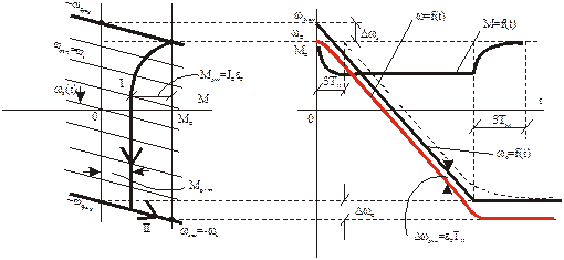 , двигатель в процессе снижения скорости продолжает работать в двигательном режиме, Dwс>0, а при изменении знака w, т.е. изменении направления вращения, переходит в тормозной режим с w>w0.