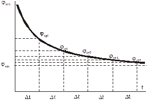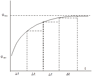 Расчет переходного процесса при усилении f производится аналогично, только кривая j=f(t) будет выглядеть так, как изображена на следующем рис.
