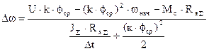 Расчет переходного процесса можно вести и в именованных величинах. Расчетное выражение для определения приращения скорости можно получить аналогично изложенному выше. Оно имеет вид