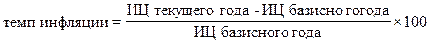 Для измерения инфляции используются индексы цен(ИЦ) – относительные показатели, характеризующие соотношение цен во времени. Темп инфляции определяется по формуле: