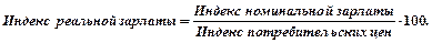 Индекс реальной заработной платы рассчитывается как отношение индекса номинальной заработной платы к индексу потребительских цен: