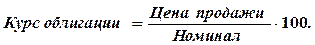 Если номинал облигации - 1000 руб., цена продажи - 1200 руб., то курс облигации составит 120%.