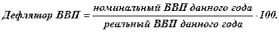 Дефлятор ВВП (индекс Пааше) рассчитывается как отношение номинального ВВП к реальному: