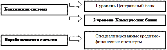 В структуре современной денежно-кредитной системы выделяют два основных уровня:Центральный банк (применительно к Республике Беларусь это Национальный банк) и коммерческие банки, а также специализированные кредитно-финансовые институты. Два первых уровня вместе образуют банковскую систему, а специализированные кредитно-финансовые институты – парабанковскую систему (с м. рис. 14.3.1.)
