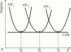 1) Экономия от масштаба (или возрастающая отдача от масштаба) имеет место тогда, когда долгосрочные средние затраты фирмы падают по мере увеличения выпуска продукции