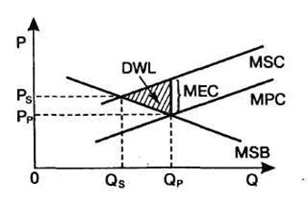 -Предельные общественные издержки (MSC) - это сумма предельных внешних издержек и предельных индивидуальных издержек.