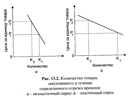 При определении спроса на товары, выпускаемые предприятием, необходимо обратить внимание на выяснение факторов, воздействующих на спрос. Дело в том, что на цену товара влияют количество производителей, предлагающих аналогичную продукцию, а также сила обычаев, привычки покупателей и т. д, то есть мы имеем дело с так называемым эластичным или неэластичным спросом (рис. 13.2).