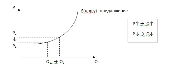 Чем выше цена товара, тем больше его количества может быть произведено и представлено к продаже на рынке.