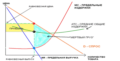 На монополистич Р осущ-ся жёст конкуренция; при уменьшении цены осущ-ся вытеснение конкурентов. Снижение цены осущ-ся до конкрет ур (рав-во цены и предел издержек)