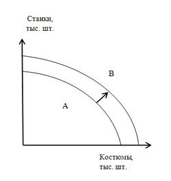 Графически совокупность альтернативных вариантов использования имеющихся ресурсов можно отобразить в виде кривой производственных возможностей (кривой трансформации). При построении данной кривой делается ряд допущений: