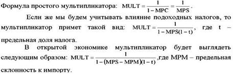 Анализируя формулы мультипликатора, можно сделать важный вывод. Экономика, в которой важное место занимают международные связи, а также высокие налоги, менее подвержена влиянию изменений в инвестициях или правительственных расходах.