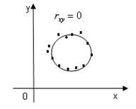 величины x и y являются некоррелированными: величина коэффициента корреляции, близкая к нулю, говорит об отсутствии линейной связи между величинами, но не об отсутствии связи между ними вообще (рисунок 3.5 в));