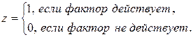 Для того, чтобы ввести фиктивную переменную в регрессионную модель, ей необходимо присвоить некоторые числовые значения, придав тем самым фиктивным переменным количественное содержание. В случае дихотомической переменной это делается следующим образом. Фиктивной переменной придается значение 1, если признак присутствует в наблюдении, и 0 – при его отсутствии. Таким образом, если z – дихотомическая переменная, то в описанном выше двоичном виде она формализуется равенством
